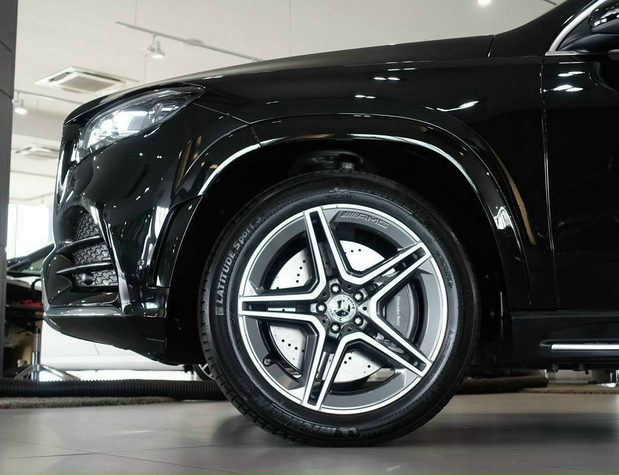 Tương xứng với ngoại hình vạm vỡ, bản GLS 450 nhập về Việt Nam được trang bị bộ bánh mâm AMG kích thước 21inch với hoạ tiết ngôi sao 5 cánh kép. Hệ thống treo khí nén có khả năng thích ứng theo nhiều chế độ khác nhau hay tuỳ chỉnh của người lái xe.